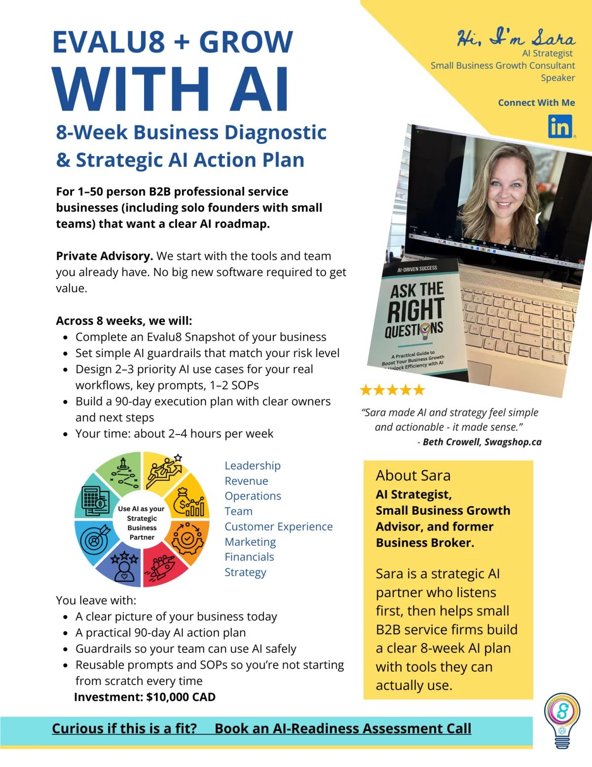 In the comprehensive review, we assess ALL growth potential across the operation and prioritize actions that may include expanding or growing your market, updating products or pricing, raising capital, adopting new technology, financial literacy, communication, training needs, building the team, among others.